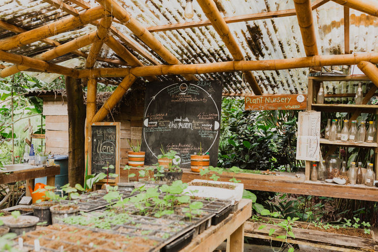 Jardines orgánicos, bosques comestibles y medicinales, que nutren la cocina de la finca a la mesa.