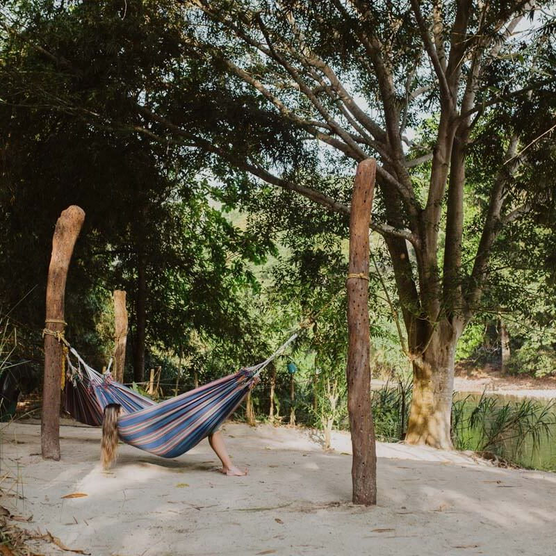 Una playa fluvial privada con aguas frescas y limpias, perfecta para descansar en hamacas, leer o meditar con el sonido del río.